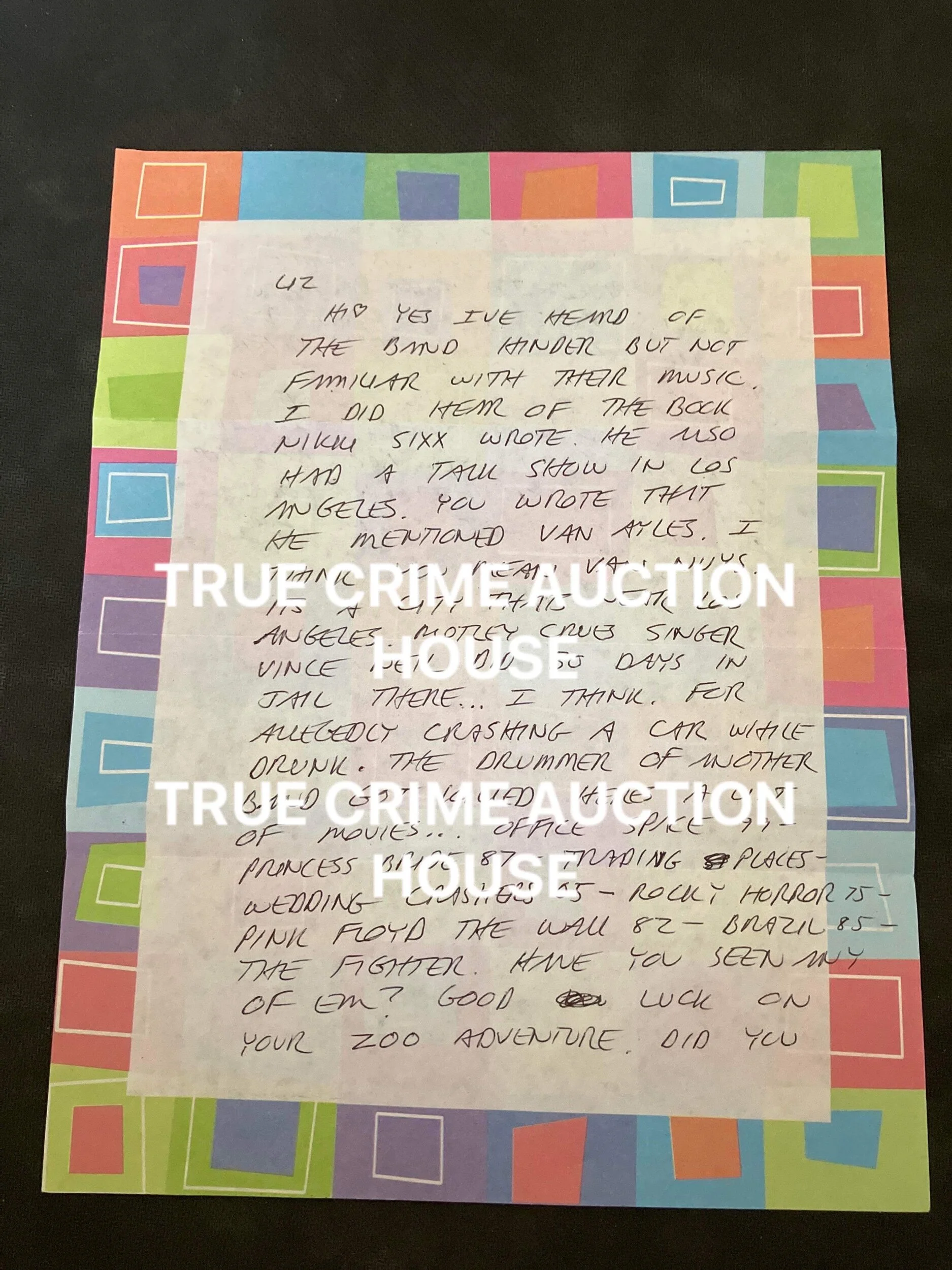 Richard Ramirez Handwritten Hand Signed Letter True Crime Auction House